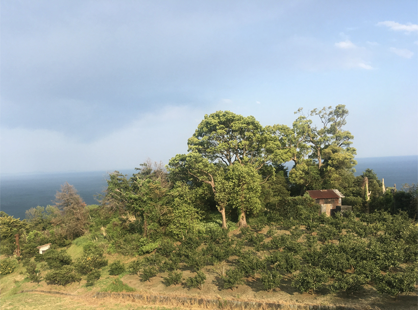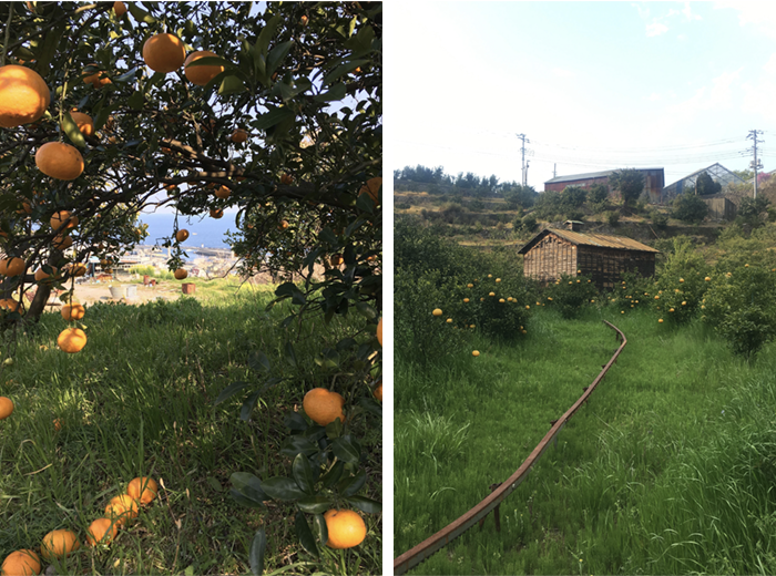We visited here by the chance and fascinated the scenery of mandarin orange fields and those huts lined up unevenly.Those huts were made by using the materials that are available to suit various situations, and each hut looks like a unique creature.