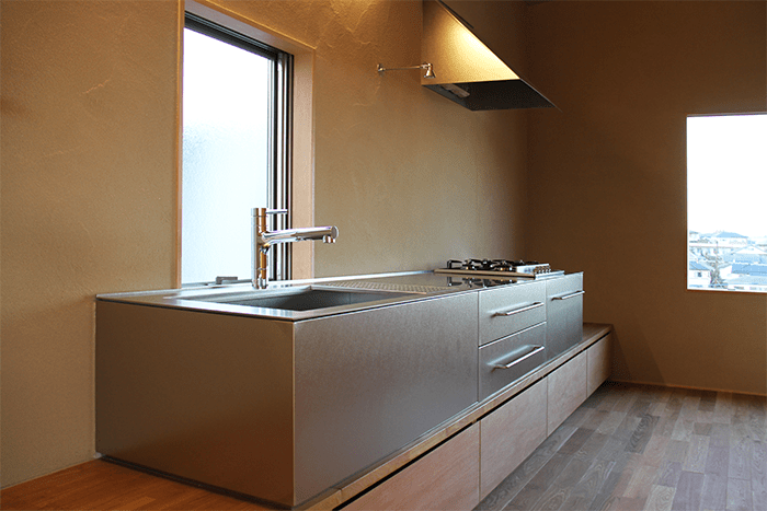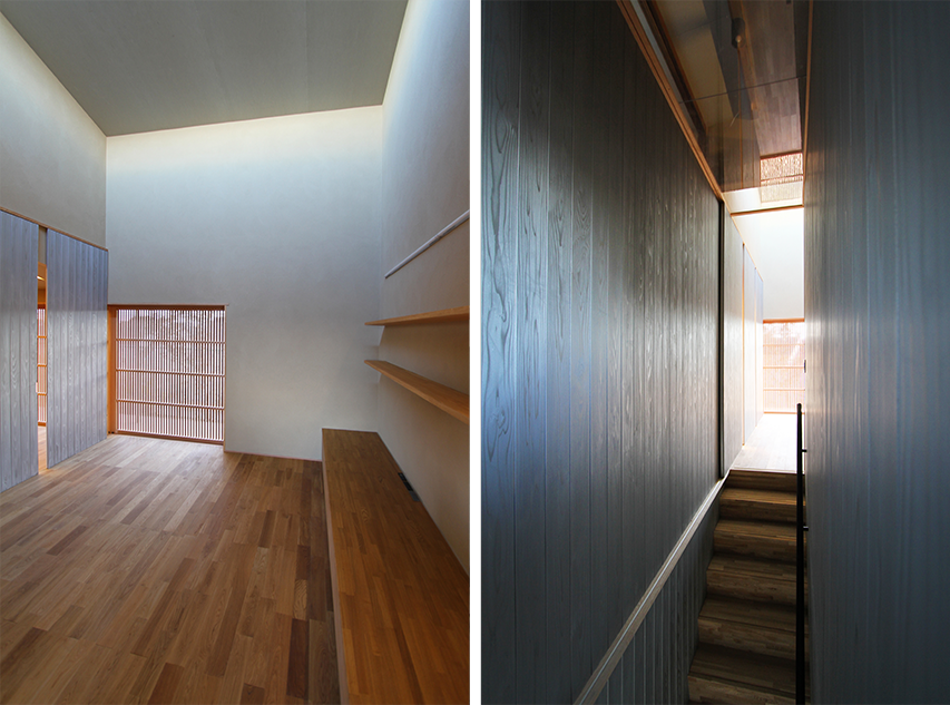 通常の設計プロセスからは生まれないのような、大きな煙突のような吹き抜け空間や、一層分を削ったことによる大きなギャップを繕うための玄関アプローチの階段などの奇妙さをあえて残すことによって、既存の佇まいから感じたこの場所の力強さを継承しようと考えました。