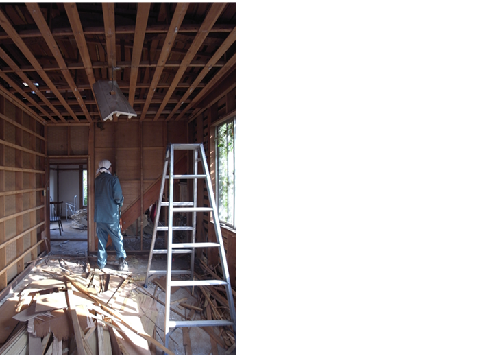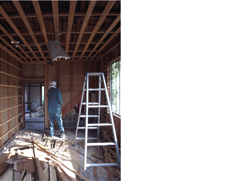 Existing houses, which were extensively constructed along the slope, had a charm that made me feel the power of the terrain.Most of the room was dark during the day as well, while taking advantage of the healthy part of the existing building where the damage was intense.