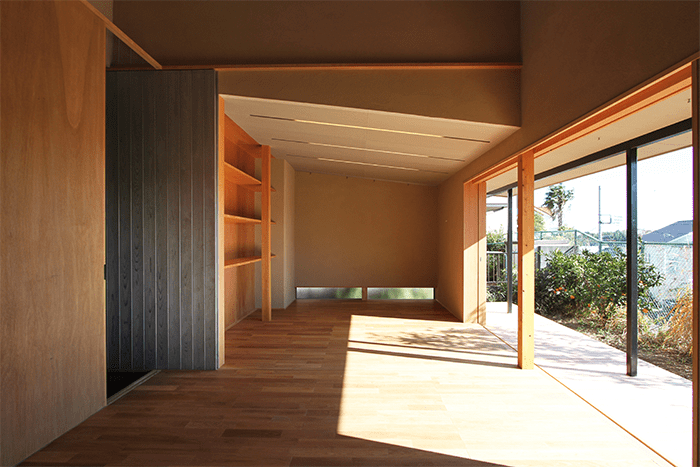 日中でも部屋のほとんどは暗く、傷みが激しかった既存建物の健全な部分を生かしながら住まい手の老夫婦にとって最適なボリュームへと削り取るように減築していきました。削り取った断面から、光と風が空間全体に満ちていくように計画しています。